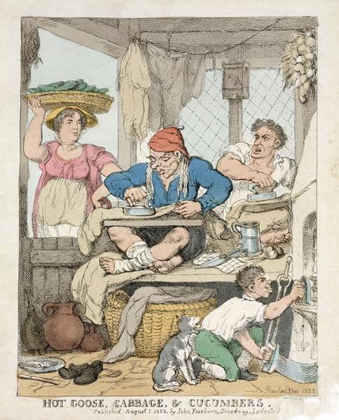 And when you start to look through images you become very aware of the tailor’s position. Jane’s comment came about because of a Thomas Rowlandson cartoon: